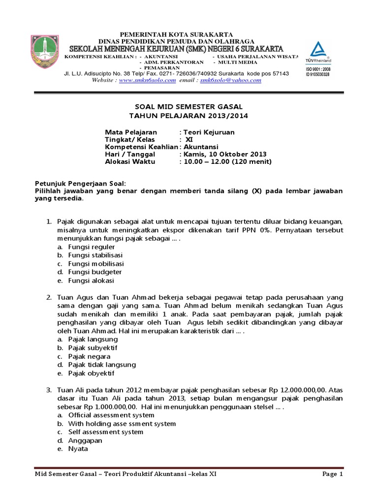Soal uts pts perbankan kelas 10 smk semester 1 lengkap beserta kunci jawabannya administrasi ngajar. Silabus ialah perangkat pembelajaran yang sangat berarti bagi seorang guru karena lewat perangkat pembelajaran silabus sehingga kita bisa mengenali materi apa saja yang akan kita. Soal ujian semester ganjil pelajaran matematika kelas x wellcome. Materi akuntansi kelas x semester 1. Semoga soal uas/pas sma 2018/2019 akuntansi kelas 10 11 12 ini dapat bermanfaat bagi anda.saran dan kritik dapat anda cantumkan pada kolom komentar dibawah,agar dilakukan perbaikan dimasa yang akan datang,terimakasih atas. Bg prakarya sma kelas x kurikulum 2013 blogerkupang com. Berikut, contoh soal pg sejarah kelas x semester ganjil k13 beserta jawabannya, dimulai dari soal nomor 61 sampai dengan 70. Buku kurikulum 2013 kelas 10 edisi revisi 2017 sahabat buku paket telah kita ketahui bersama bahwa buku merupakan jendela dunia dengan rutin membaca dapat di print untuk media pembelajaran di kelas dengan judul konsep dasar akuntansi dan pelaporan keuangan jilid 1 kelas 10 smk. Demikianlah materi pelajaran fiqih dan ushul fiqih kelas 10 ma semester 1 dan 2 berdasarkan kurikulum 2013. Uji syukur kehadirat allah swt penulis panjatkan atas dapat diselesaikannya penulisan buku akuntansi ini. Sumber sejarah merupakan hasil atau rekaman dari peristiwa sejarah. Semoga dapat membantu ibu dan bapak guru dalam mengajar. Soal berisi pilihan ganda disertai kunci jawaban dan juga s.